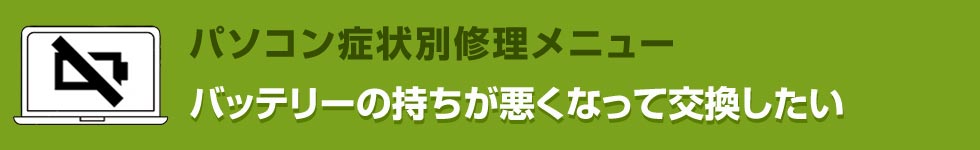 ノートパソコンのバッテリーは容量や使い方にもよりますが、2年~3年で劣化して持ちが悪くなります。3年以上使用していると突然充電もできなくなる場合がありますので、そうなる前にバッテリー交換をしてください。5年以上経過したパソコンの場合はメーカーやモデルによっては生産終了のため入手できない場合もあります。その場合は互換品を探して交換することも可能ですのでお困りの際はご相談ください。